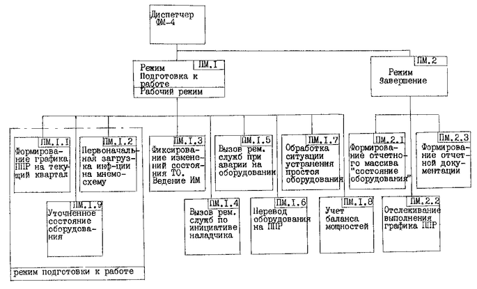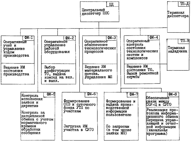 Основное назначение диспетчера ФМ-4 - организация очередности работы программных модулей (ПМ) по обработке, регистрации и выдаче управляющей информации о состоянии технологического и транспортного оборудования цеха.