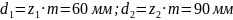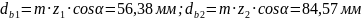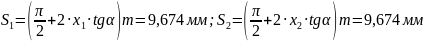 Толщины зубьев шестерни и колеса по дугам делительных окружностей: