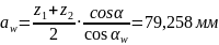 Откладывают межосевое расстояние аw и проводят окружности: начальные dw1 dw2, делительные d1, d2 и основные db1, db2, окружности вершин dа1, dа2 и впадин df1, df2,
