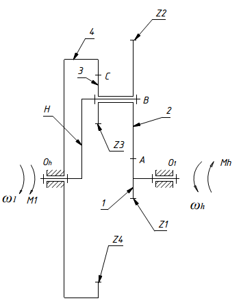 Передаточное отношение планетарной передачи определим исходя из выполненных графических построений по соотношению: