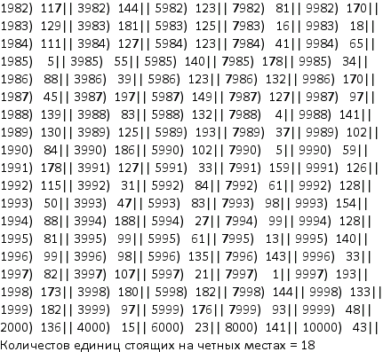 Подсчитать количество «единиц», стоящих на чётных местах массива.