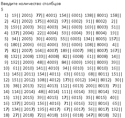 2. Ввести из файла и вывести в командное окно массив с указанием индекса каждого элемента в несколько столбцов.