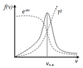 f(v) зависит от отношения кинетической энергии молекулы, отвечающей рассматриваемой скорости