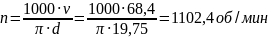 Частоту вращения шпинделя n, об/мин, определяют по формуле: