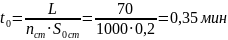 Основное технологическое( машинное) время операции сверления t0, мин: