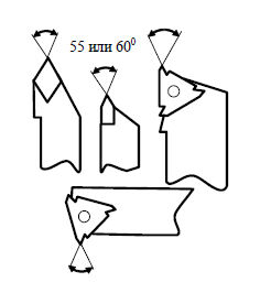 -Контурные резцы с параллелограмной, ромбической или треугольной пластиной для обработки фасонных поверхностей, конусов, наружного точения. Если фи>900, то и для подрезки торцев.
