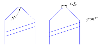 Всегда используются округлые вершины резца в плане r=0,2-1мм