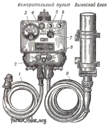 Состав прибора: измерительный пульт; выносной блок; соединительный кабель длиной 1.2 м; скобы для крепления измерительного пульта и блока; ЗМП, тех описание, паспорт, формуляр.