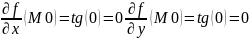 Геометрическое доказательство очевидно. Если в точке M0 провести касательную плоскость то она естественно пройдет горизонтально те под углом