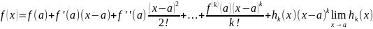 Теорема Тейлора: Пусть k ≥ 1 является целым, и пусть функция f : R → R является k раз дифференцируемой в точке a ∈ R. Тогда существует функция