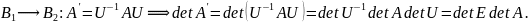 Теорема об инвариантности определителя матрицы относительно базиса: Определитель матрицы ЛО не зависит от выбора базиса.