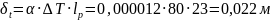 1/0c - коэффициент температурного расширения стали;
