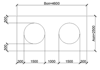 Корректировка геометрических параметров плиты-насадки из условия расположения буронабивных столбов Ø1,5 м: