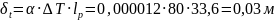 1/0c - коэффициент температурного расширения стали;