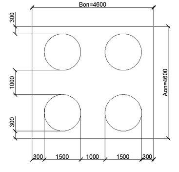 Корректировка геометрических параметров плиты-насадки из условия расположения буронабивных столбов Ø1,5 м: