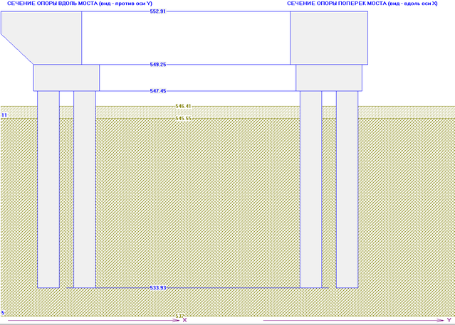 Программа ОПОРА_Х предназначена для cбора нагрузок и расчета фундаментов устоев и промежуточных опор автодорожных, железнодорожных и пешеходных мостов (любых габаритов проезжей части, с разрезными и неразрезными пролетными строениями, мостов на кривых, и косых путепроводов) на следующие нагрузки и их сочетания:
