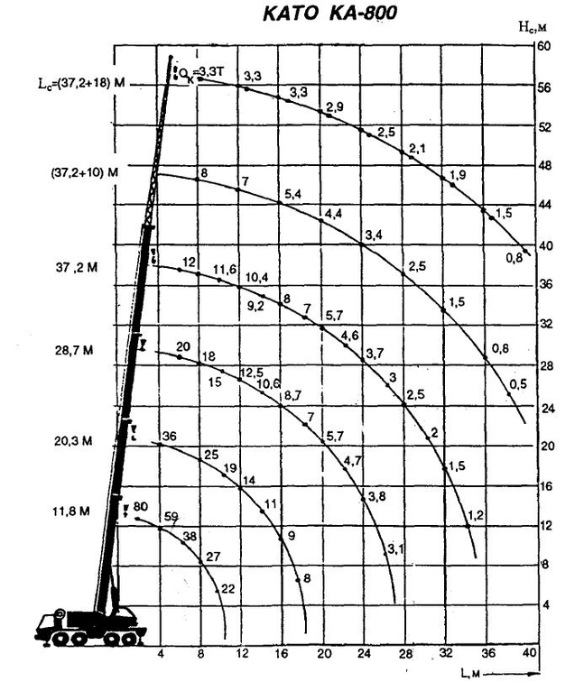 Рисунок Д.3. Характеристика грузоподъемности крана