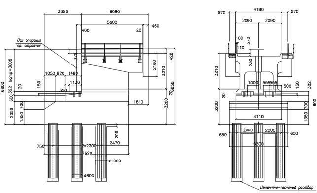 Береговые опоры запроектированы применительно типовому проекту столбчатых опор и фундаментов железнодорожных мостов для северно-климатической зоны (инв. № 1067/1).