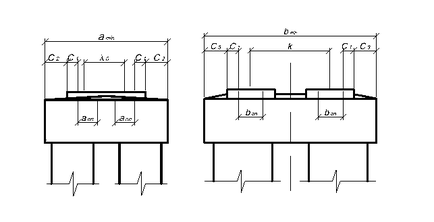 – площадь опирания столбчатой опоры, u — периметр поперечного сечения столбчатой опоры, сf — коэффициент условий работы грунта на боковой поверхности сваи, зависящий от способа образования скважины и условий бетонирования, принимаемый по указаниям [2], fi — расчетное сопротивление i-го слоя грунта на боковой поверхности столбчатой опоры, принимаемое по указаниям [2], hi — толщина i-го слоя грунта, соприкасающегося с боковой поверхностью столбчатой опоры ;