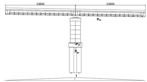 Фундамент принимаем свайный, на буронабивных столбах диаметром 1,5м. Количество столбов – 4 шт., глубина погружения столбов – 20 м.