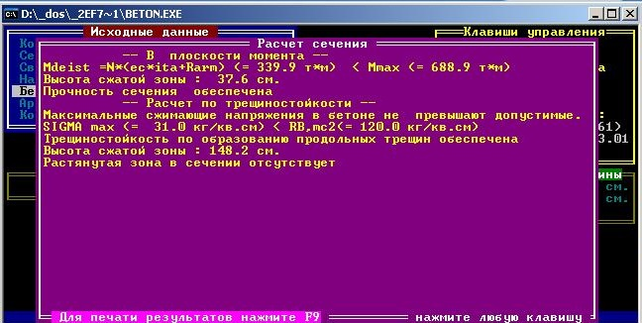 Рисунок 3.5. – Результат расчёта программы “Beton”