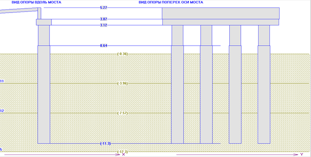 Программа ОПОРА_Х предназначена для cбора нагрузок и расчета фундаментов устоев и промежуточных опор автодорожных, железнодорожных и пешеходных мостов (любых габаритов проезжей части, с разрезными и неразрезными пролетными строениями, мостов на кривых, и косых путепроводов) на следующие нагрузки и их сочетания: