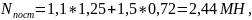 – коэффициент равный 1,1 при трехпролетной схеме неразрезного балочного пролетного строения,