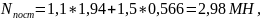 Принимается 8 столбов диаметром 1,5м и длиной 8,52м.