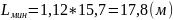 определяют из условия, что угол её наклона к вертикали γ не должен превышать 60°,м