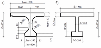 Рис. 3.15. Сечение глaвнoй бaлки: a) фaктическoе; б) рaсчетнoе.