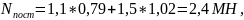 Определяется суммарная нагрузка на фундамент опоры Nф, МН: