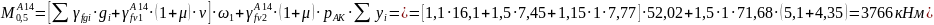 Расчетные усилия в одной балке от постоянных и временных нагрузок А14 и Н14 определятся по формулам: