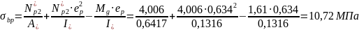 - величина предварительного напряжения в арматуре с учетом первых и вторых потерь;