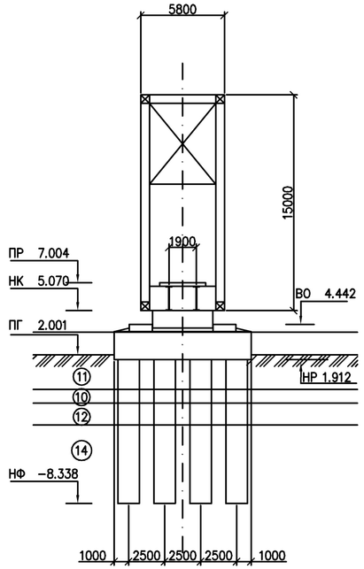 Во всех опорах фундамент заглублен в несущий слой (аргилит очень низкой прочности размягчаемый в воде сильновыветрелый до состояния твердой глины) на величину не менее 3 м.