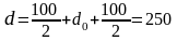 – длина прямой вставки между переходными кривыми, принимается– 150 м.