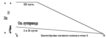 Расчет путепроводной развязки в профиле заключается в определении длины подъемной части в профиле III пути (рисунок 7.2). При этом учитываются следующие условия: высота бровки земляного полотна путей I и II в точке Б относительно точки А составляет