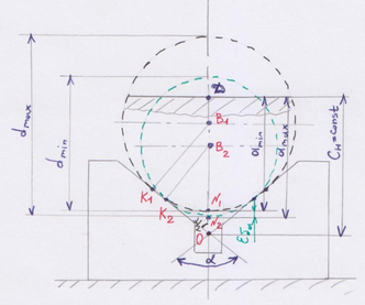 Точка О ‒ постоянная точка (линия) призмы, относительно нее идет настройка инструмента;