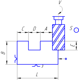 Планка размером B×L устанавливается в тисках. Определить погрешность базирования при фрезеровании уступа. Выдерживаемые размеры A и E.