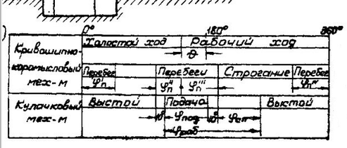 Рис. 1 – 5. Циклограмма работы механизма строгального станка φпод = φсп