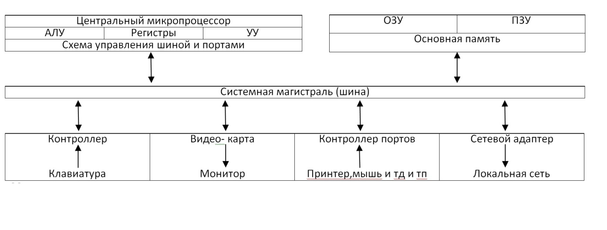 КПВВ – контроллеры портов ввода-вывода управляют обменом информацией с периферийными устройствами;