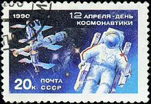 Рис. 2. Почтовая марка СССР 1990 года с изображением станции «Мир»