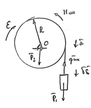 опускается с помощью каната, перекинутого через блок радиуса R, весом