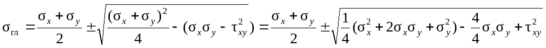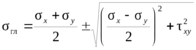 В полученной формуле sx и sy - нормальные напряжения в неглавных площадках,