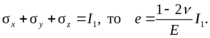 Относительное изменение объема пропорционально первому инварианту напряженного состояния I1.