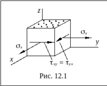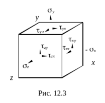 В конкретном примере оси к площадкам, содержащим касательные напряжения, могут имеет обозначения , отличные от x, y, z.