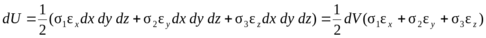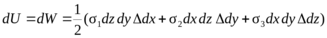 , что является удлинением размера dx. При статическом нагружении, когда силы работают на ими же созданных перемещениях, в формуле работы всегда стоит коэффициент 1/2. Согласно теореме Клапейрона, работа внешних dW сил равна потенциальной энергии деформации dU, накопленной телом. В нашем случае