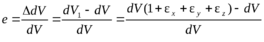 Относительное изменение объема e равно изменению объема, деленному на первоначальный объем