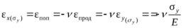 eпоп = -ν eпрод., где ν - коэффициент Пуассона.