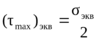 . (2) Поскольку в данной теории в качестве критерия выбрано tmax, то два напряженных состояния равноопасны, если у них одинаковы максимальные касательные напряжения. Приравняв правые части выражений (1) и (2), получим формулу для определения эквивалентного напряжения по теории прочности максимальных касательных напряжений
