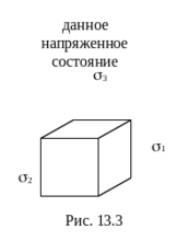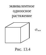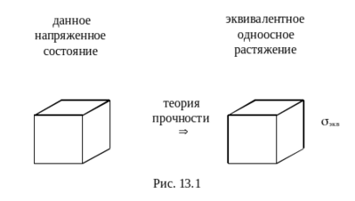 При расчете на прочность в случае сложного напряженного состояния данное напряженное состояние с помощью теории прочности выражается через столь же опасное, эквивалентное ему одноосное растяжение (рис. 13.1)